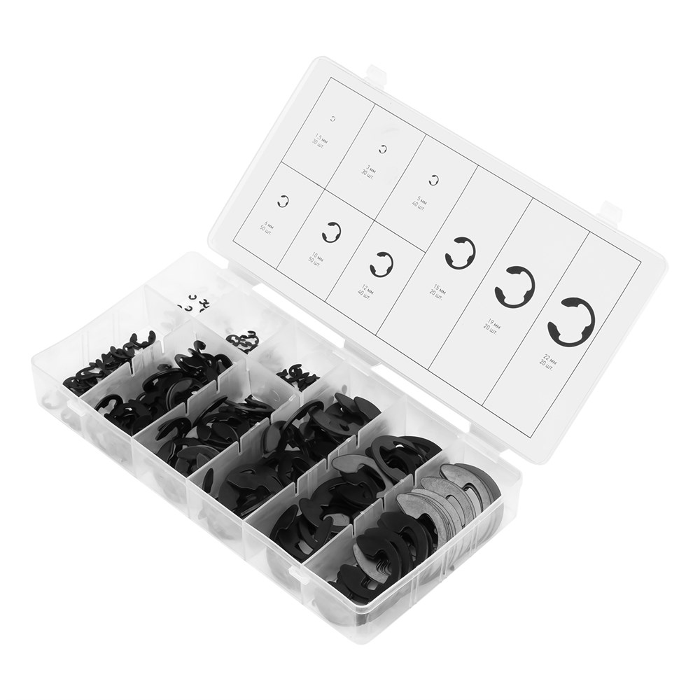 КомплектацияПластиковый кейс- 1 штСтопорные кольца: 1,5 мм - 30 шт3 мм - 30 шт5 мм - 40 шт6 мм - 50 шт10 мм - 50 шт12 мм - 40 шт15 мм - 20 шт19 мм - 20 шт22 мм - 20 шт