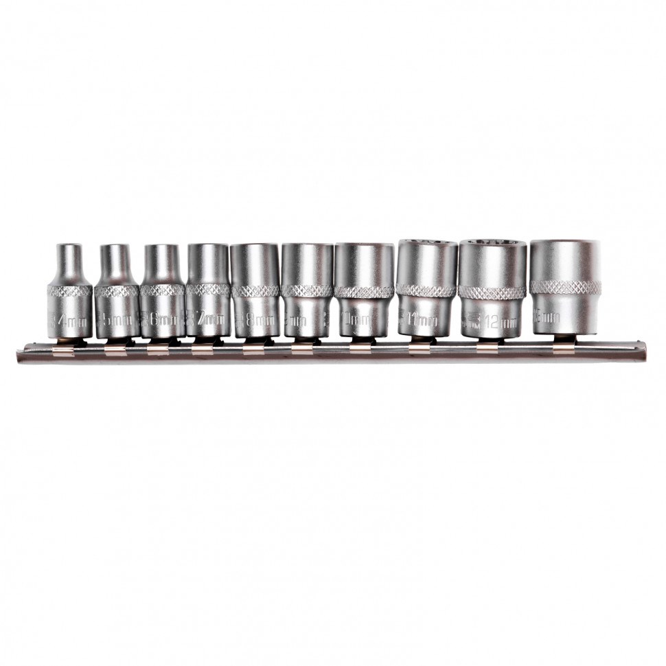КомплектацияГоловка торцевая, 4 мм - 1 штГоловка торцевая, 5 мм - 1 штГоловка торцевая, 6 мм - 1 штГоловка торцевая, 7 мм - 1 штГоловка торцевая, 8 мм - 1 штГоловка торцевая, 9 мм - 1 штГоловка торцевая, 10 мм - 1 штГоловка торцевая, 11 мм- 1 штГоловка торцевая, 12 мм - 1 штГоловка торцевая, 13 мм - 1 штМеталлическая плашка-держатель - 1 шт
