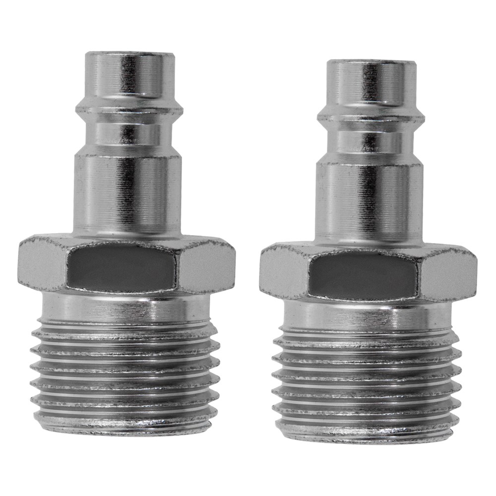 Универсальный быстросъемный ниппель Stels 57067, 2 шт. в упаковке, предназначен для перехода с внешней резьбы 1/2 дюйма на рапид типа «папа» для соединения пневматического шланга и компрессора. Используется для работы с пневмоинструментом, будет полезен на строительной площадке, в гараже и автосервисе.
