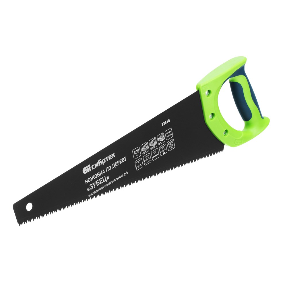 Ножовка по дереву "Зубец", 400 мм, 7-8 TPI, каленый зуб 2D, защитное покрытие, двухкомпонентная рукоятка Сибртех