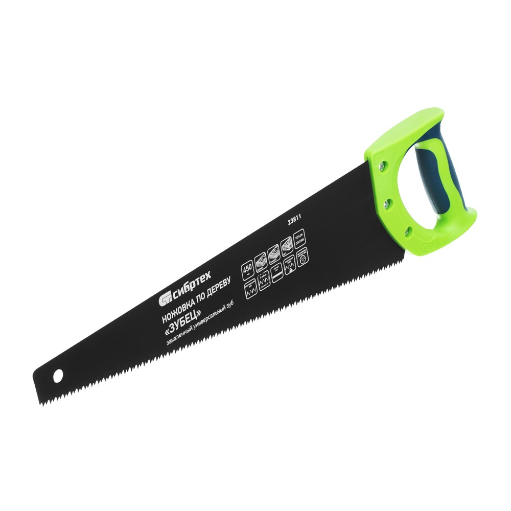 Ножовка по дереву "Зубец", 450 мм, 7-8 TPI, каленый зуб 2D, защитное покрытие, двухкомпонентная рукоятка Сибртех