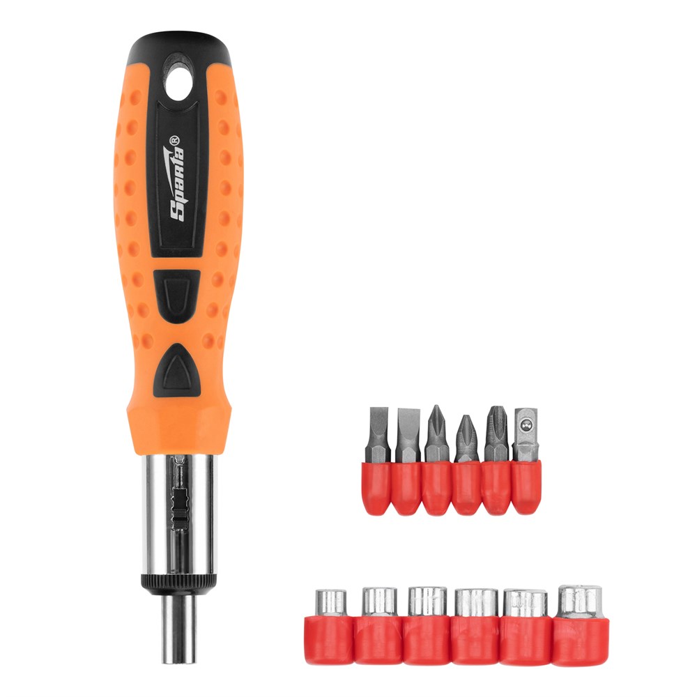 Отвертка реверсивная, биты, головки торцевые, 14 шт, Sparta