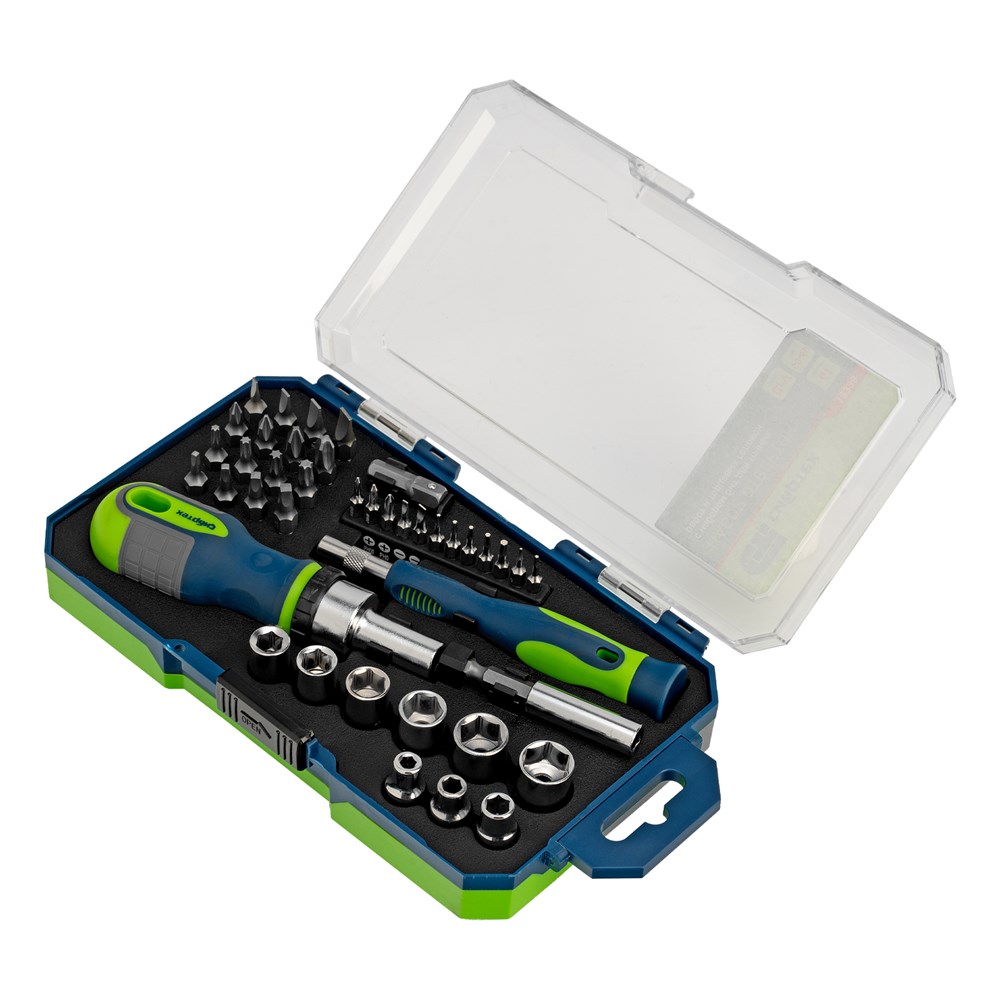 Отвертки реверсивные с набором бит и торцевыми головками, 41 шт, CrV Сибртех