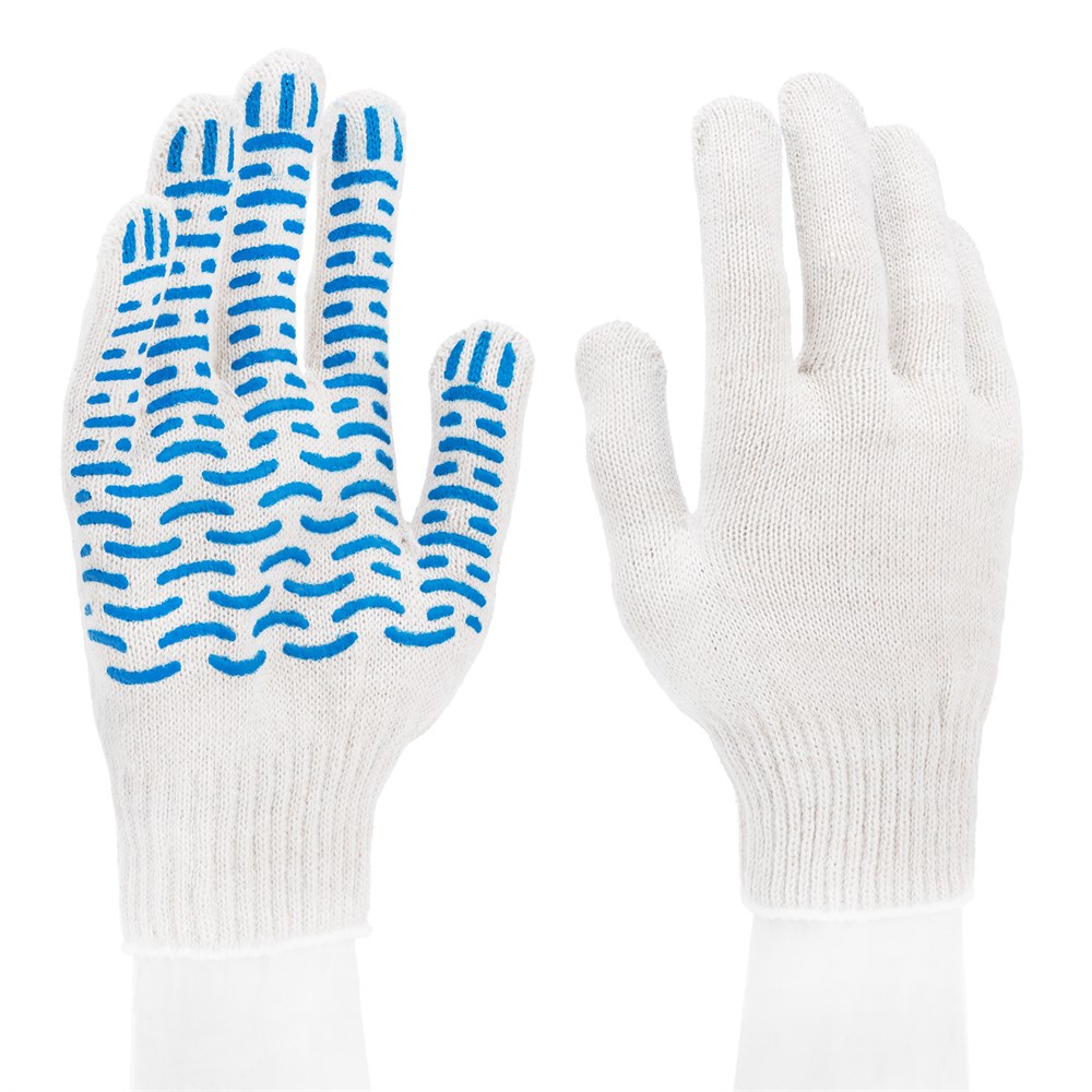 Хлопчатобумажные перчатки 67777 с ПВХ-покрытием «Волна», 10 класса вязки, защищают руки от царапин, порезов, ссадин, мозолей и загрязнений. Тонкая пряжа сохраняет чувствительность пальцев, поэтому перчатки подходят для выполнения точных работ. Благодаря ПВХ-покрытию ладонной части инструменты не выскальзывают из рук. Перчатки используют в строительстве, на производстве, во время ремонта помещений и обслуживания автомобилей. Пригодятся они и в хозяйстве.