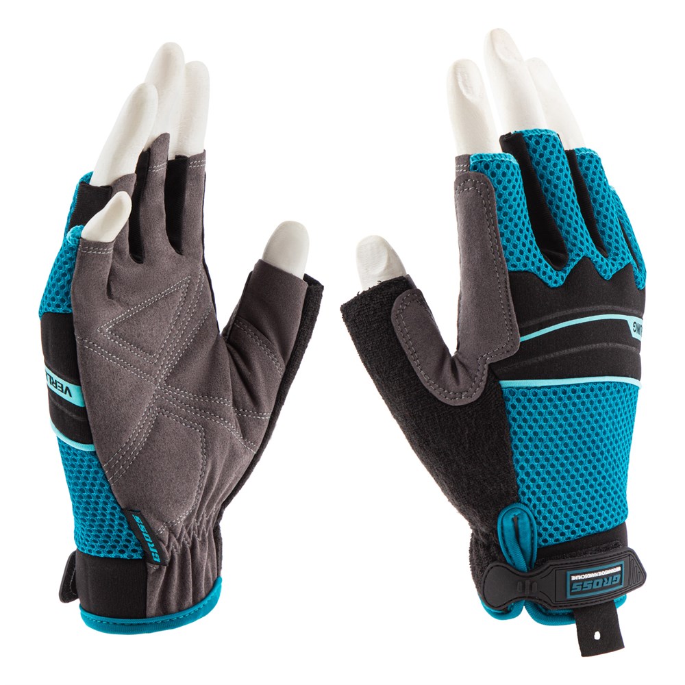 Комбинированные облегченные перчатки Gross AKTIV 90316 размера L, с открытыми пальцами, — часть экипировки для проведения ремонтных, строительно-монтажных работ или занятий активными видами спорта. Пенный протектор защищает руки от повреждений и образования мозолей. Открытые пальцы облегчают манипуляции с мелкими предметами. Перчатки имеют анатомический крой, плотно облегают кисти рук и не сковывают движения.
