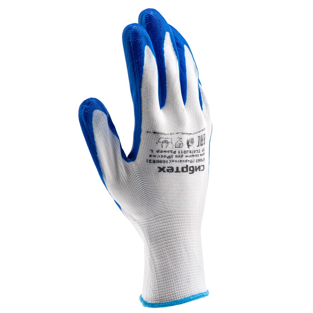 Перчатки полиэфирные с синим нитрильным покрытием, размер L, 15 класс вязки Сибртех