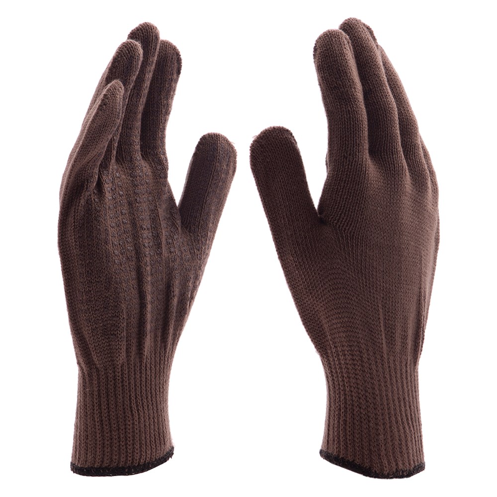 НаименованиеПерчатки трикотажные, акрил, ПВХ гель, "Протектор", коричневый, оверлок Сибртех