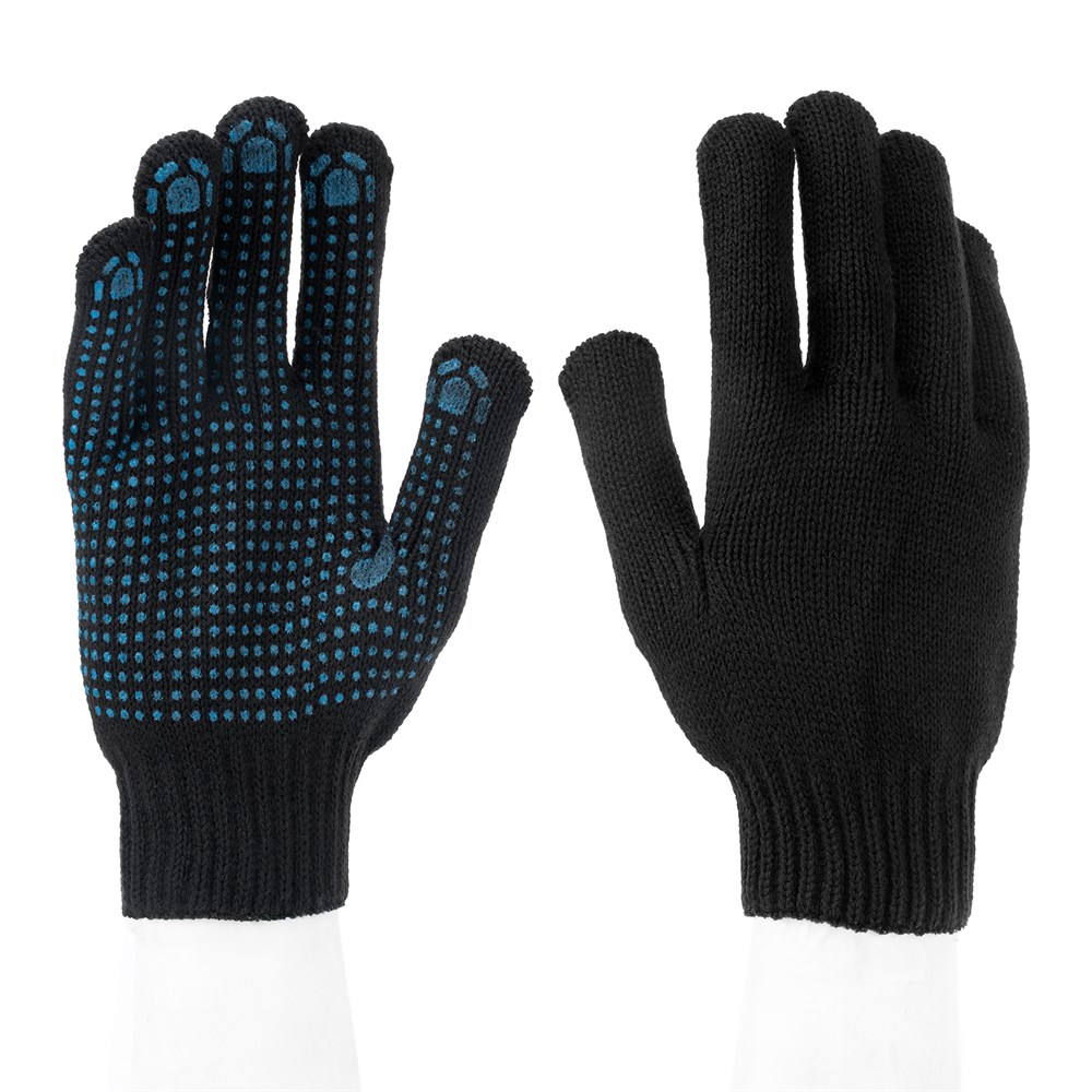 Трикотажные перчатки Сибртех 67701, содержащие акрил, с ПВХ-покрытием «Точка», 7 класса вязки, защищают руки от образования царапин, ссадин и мозолей. Могут использоваться при низких температурах, поскольку их основа на 70% состоит из акрила. Перчатки будут полезны на строительной площадке, складе, в автосервисе, а также дома или на даче.