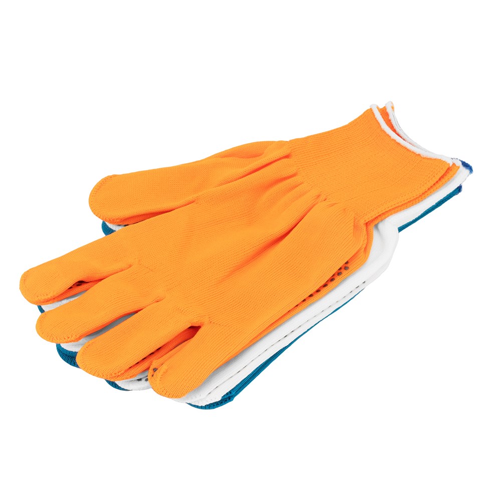 - Долговечность — точечное покрытие из ПВХ увеличивает сопротивляемость перчаток истиранию, продлевая срок их службы.