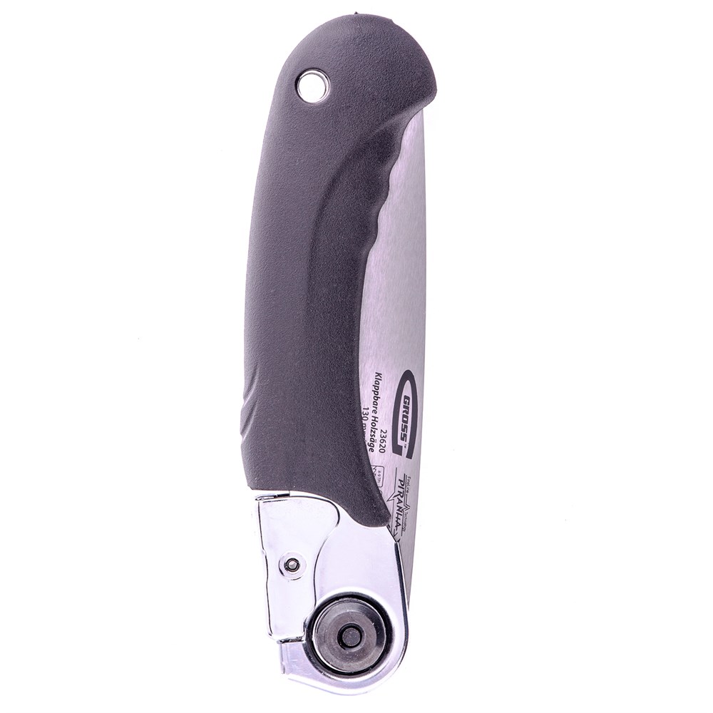 Складная пила по дереву Gross PIRANHA 23620 с полотном длиной 130 мм, калеными зубьями с 3D-заточкой и шагом 8-9 TPI, с обрезиненной рукояткой, в кобуре, предназначена для кемпинга и работы в саду. Подходит для продольного и поперечного пиления древесины. Зубья с трехгранной заточкой и шагом 8-9 TPI обеспечивают быструю распиловку. Пила легко складывается, поэтому ее можно брать с собой в поездку, поход или на пикник, не опасаясь пораниться в процессе транспортировки. В комплект входит чехол-кобура, которую можно повесить на ремень.