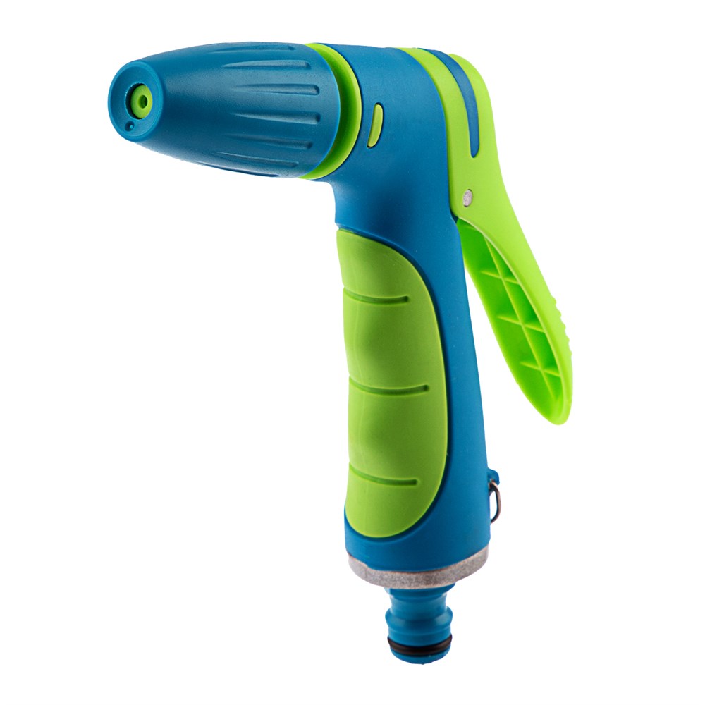 - Возможность непрерывного полива — пистолет оснащен курком с механизмом фиксации, постоянно держать на нем руку не придется.