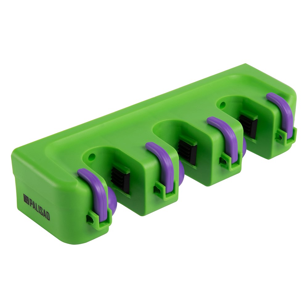 Пластиковый настенный держатель для садово - огородного инструмента, 3 ячейки, 4 крюка, Palisad