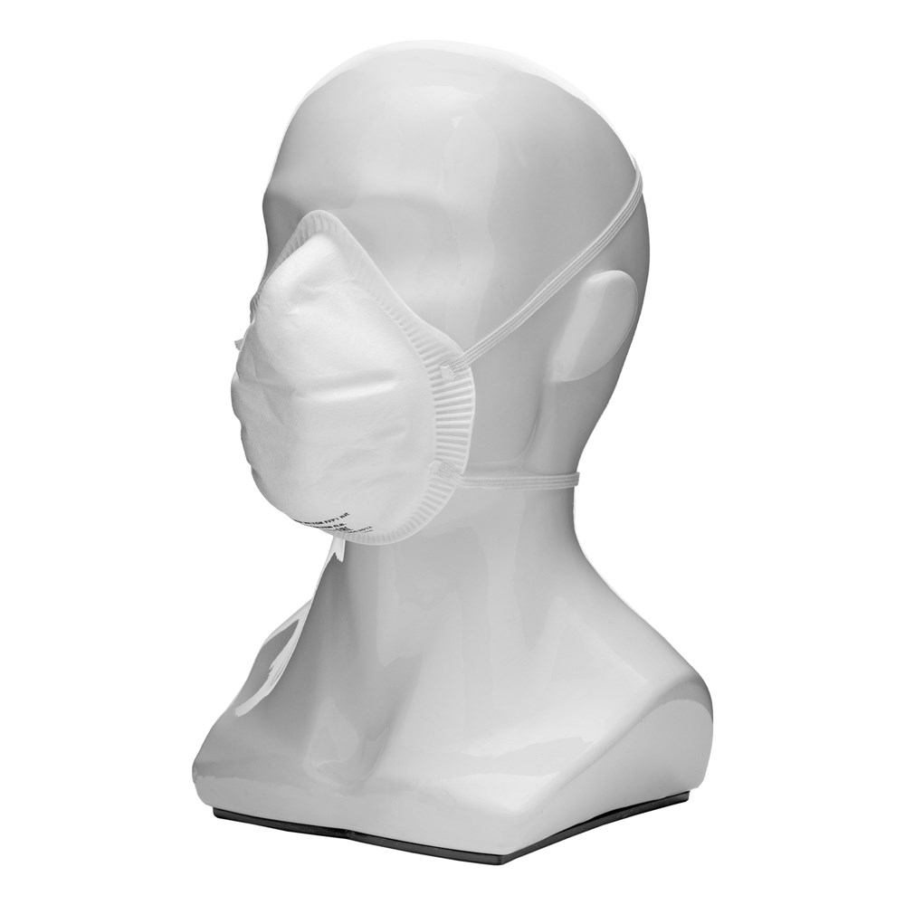 - Полумаска не спадает во время работы, т.к. имеет чашеобразную форму и эластичные резинки оголовья для надежной посадке на любом лице.