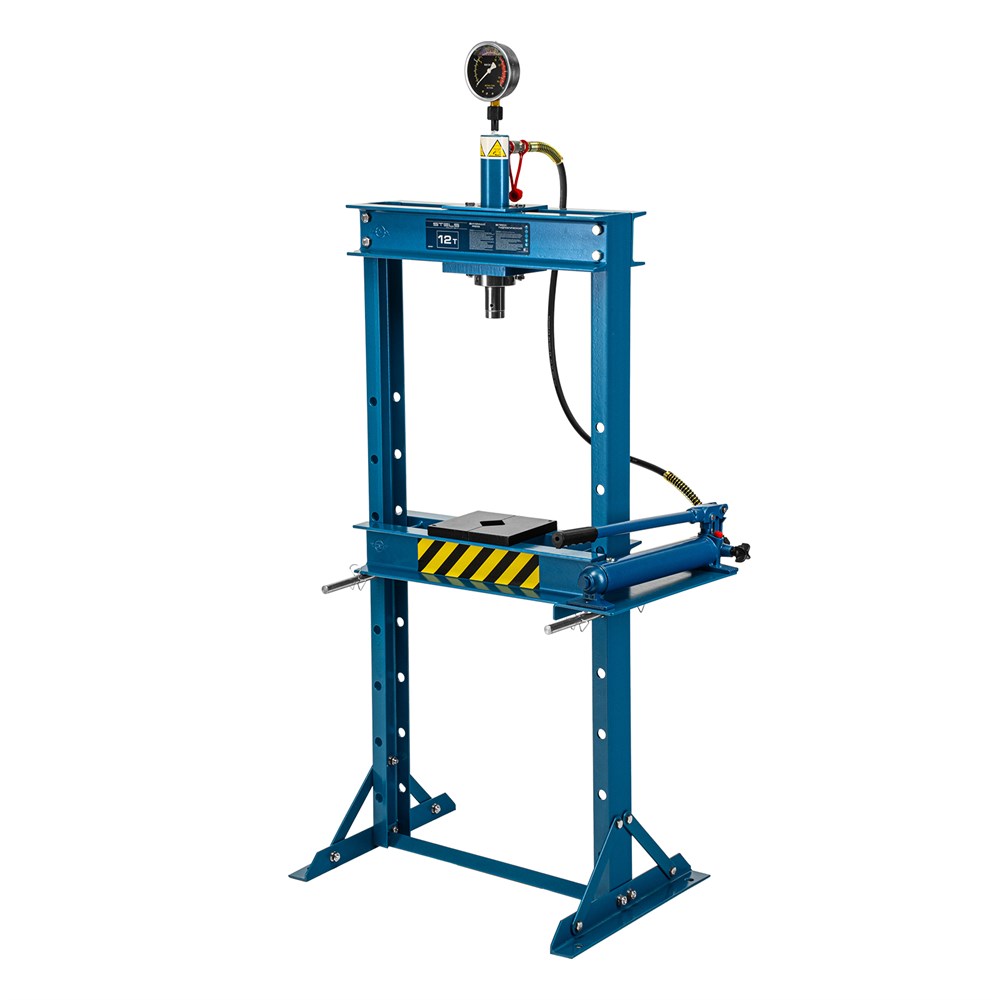 Гидравлический пресс Stels 52301 с манометром способен развивать усилие до 12 т. Его используют для запрессовки и выпрессовки подшипников, втулок, сайлентблоков, штифтов и других деталей. Для контроля давления предусмотрен глицеринозаполненный манометр. Высококачественный гидравлический насос с ручным приводом обеспечивает плавный ход штока. Пресс будет полезен в автосервисе или гараже.