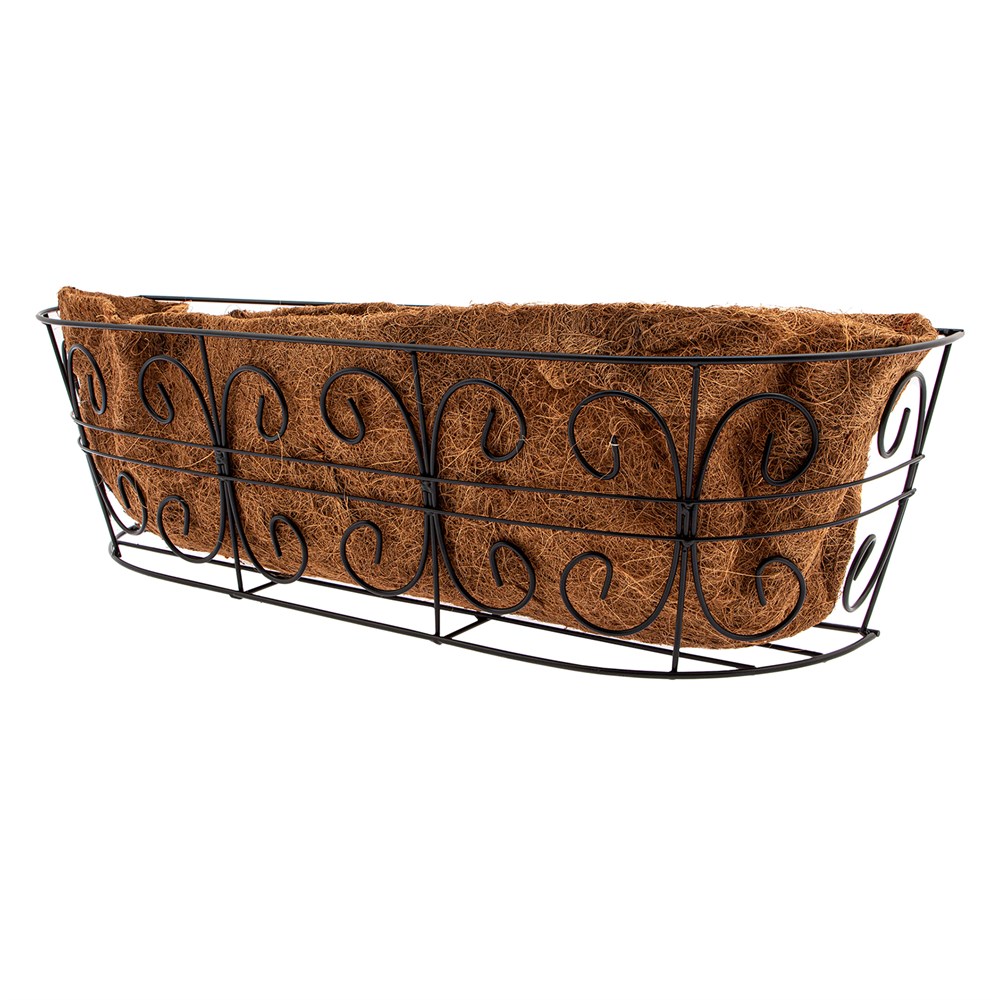 Пристенное кашпо Palisad 69014 размером 74 х 20 см, с декором и кокосовой корзиной, используется для компактного размещения растений ампельного и вьющегося типа. Позволяет украсить балкон, террасу или ограду дома.