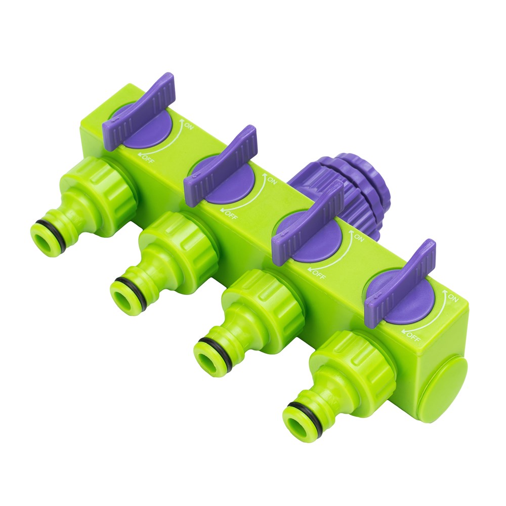Регулируемый четырехканальный разветвитель Palisad 66425 подключает 4 магистрали к водопроводному отводу или крану диаметром 1/2" или 3/4". Переходник входит в комплект. Разветвитель позволяет использовать шланги разного диаметра и будет полезен для организации системы орошения на участке большой площади.
