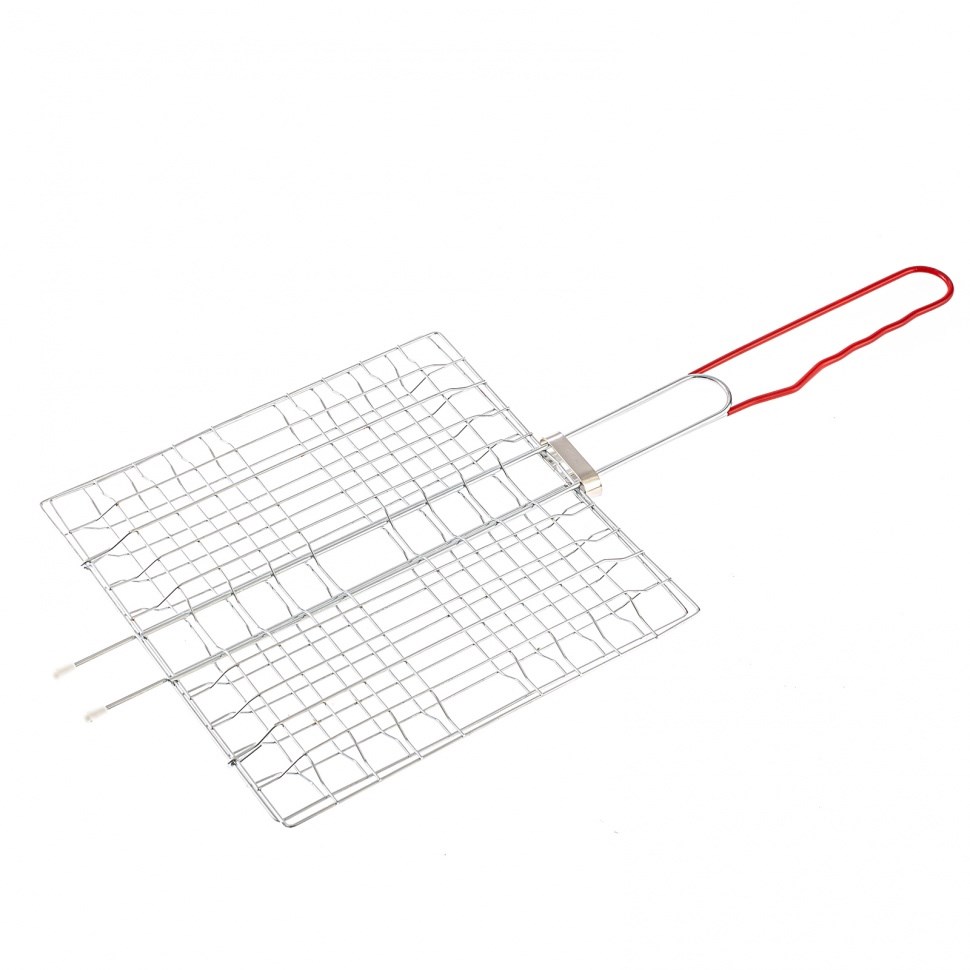 - Решетка оснащена увеличенными опорными стержнями, поэтому она надежно лежит на мангале, а в процессе готовки используется вся ее площадь.