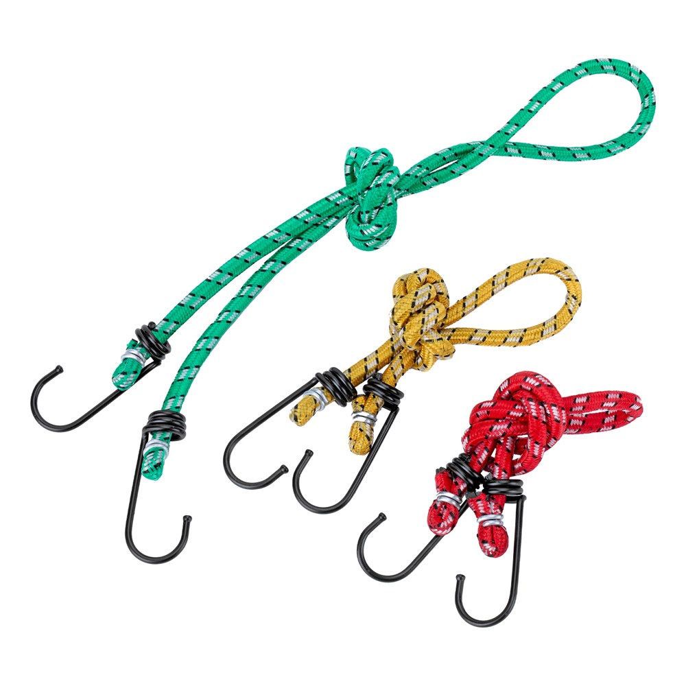 Багажные резинки Sparta 543345 входят в набор из 3 жгутов длиной 450, 600 и 900 мм, предназначенных для фиксации предметов на различных конструкциях, например, багажниках автомобилей. Надежно крепятся крюками и не дают сдвигаться грузу во время движения. Оплетка из полиэстера придает резиновым жгутам дополнительную прочность и износостойкость. Набор пригодится любителям автопутешествий.