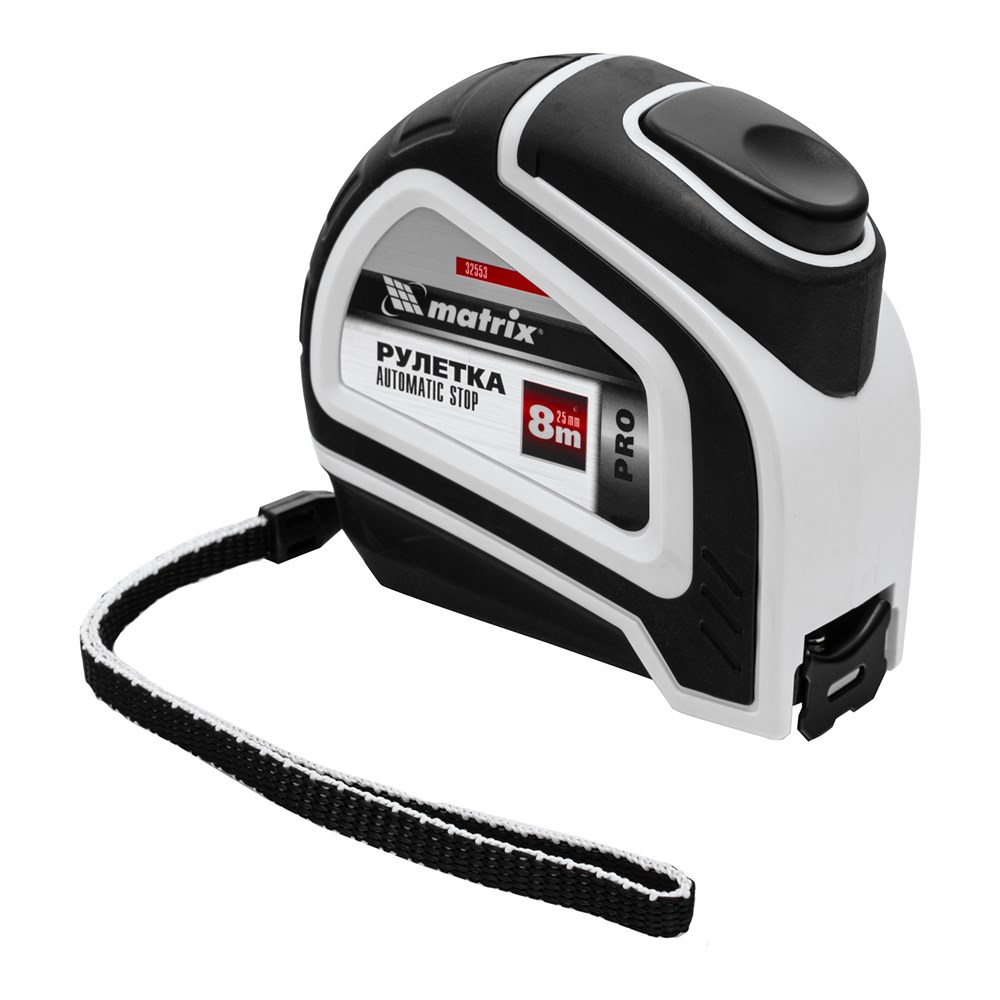 НаименованиеРулетка Autostop,8 м х 25 мм,двухкомпонентный корпус,автоматическая фиксация,Pro Matrix