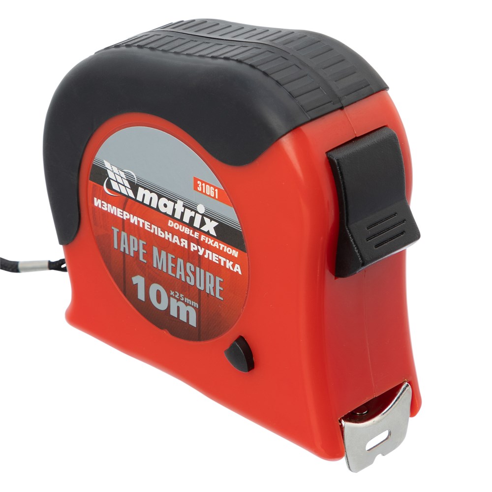 Рулетка Double fixation,10 м х 25 мм,обрезиненный корпус,двойная плавная фиксация Matrix