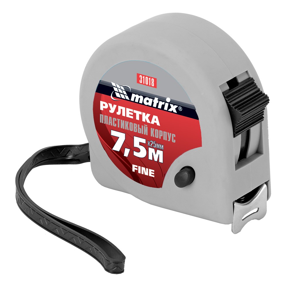 НаименованиеРулетка Fine,7,5 м х 25 мм,пластиковый корпус Matrix