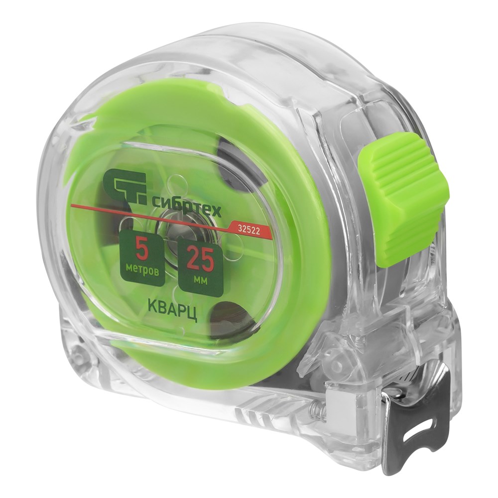 Рулетка Кварц,прозрачный корпус,амортизатор,5 м х 25 мм Сибртех