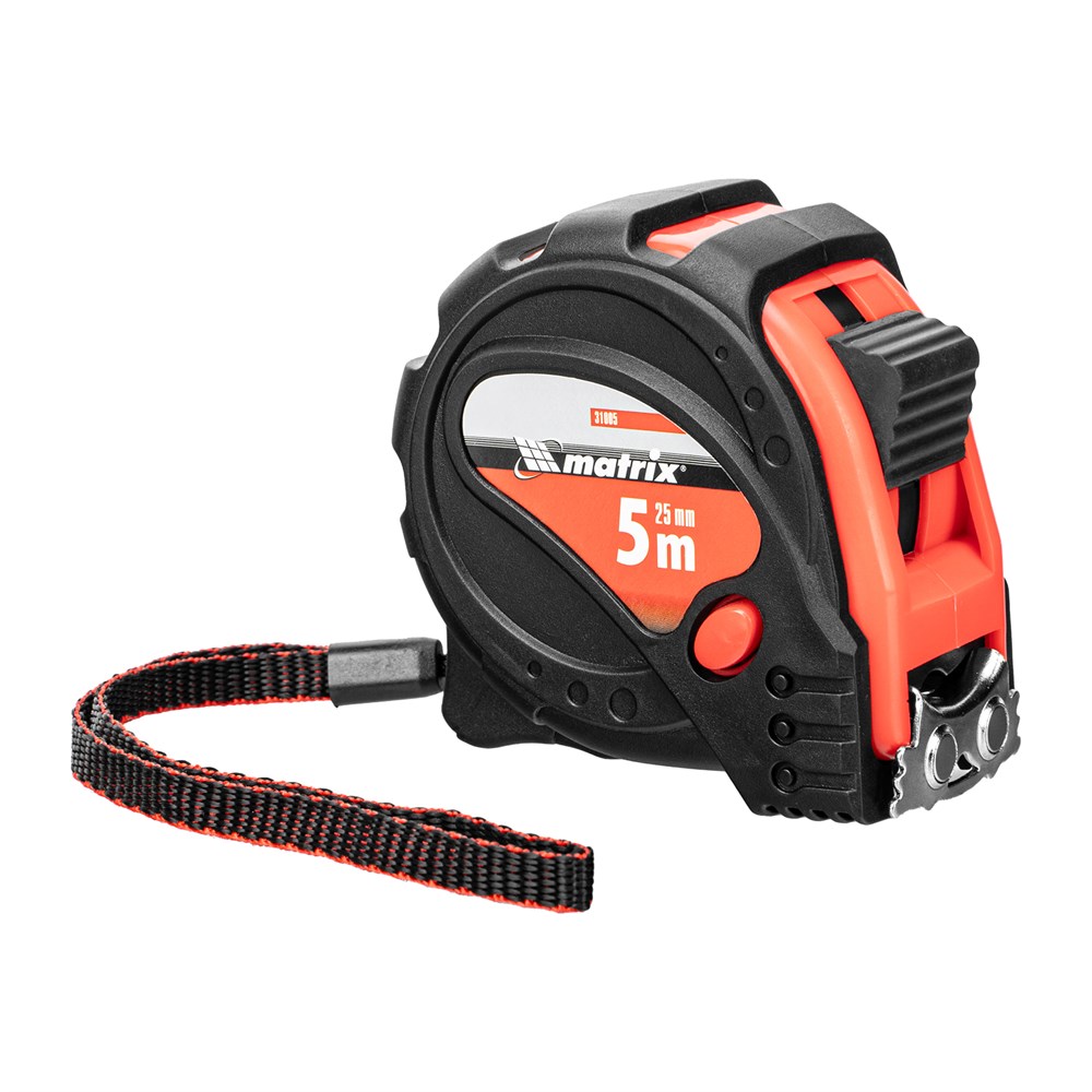 Рулетка Matrix Status magnet 3 fixations 31005 с полотном длиной 5 м и шириной 25 мм, в обрезиненном корпусе, оснащенная зацепом с магнитом, предназначена для измерения различных объектов и расстояний. Имеет класс точности 2 и цену деления 1 мм, что обеспечивает достаточную результативность замеров. Магнитный зацеп позволяет четко фиксировать измерительное полотно на металлических предметах. Стальная лента шириной 25 мм обладает большой упругостью, что облегчает работу в труднодоступных местах. Рулетка будет полезна при проведении строительных работ, а также пригодится в быту.