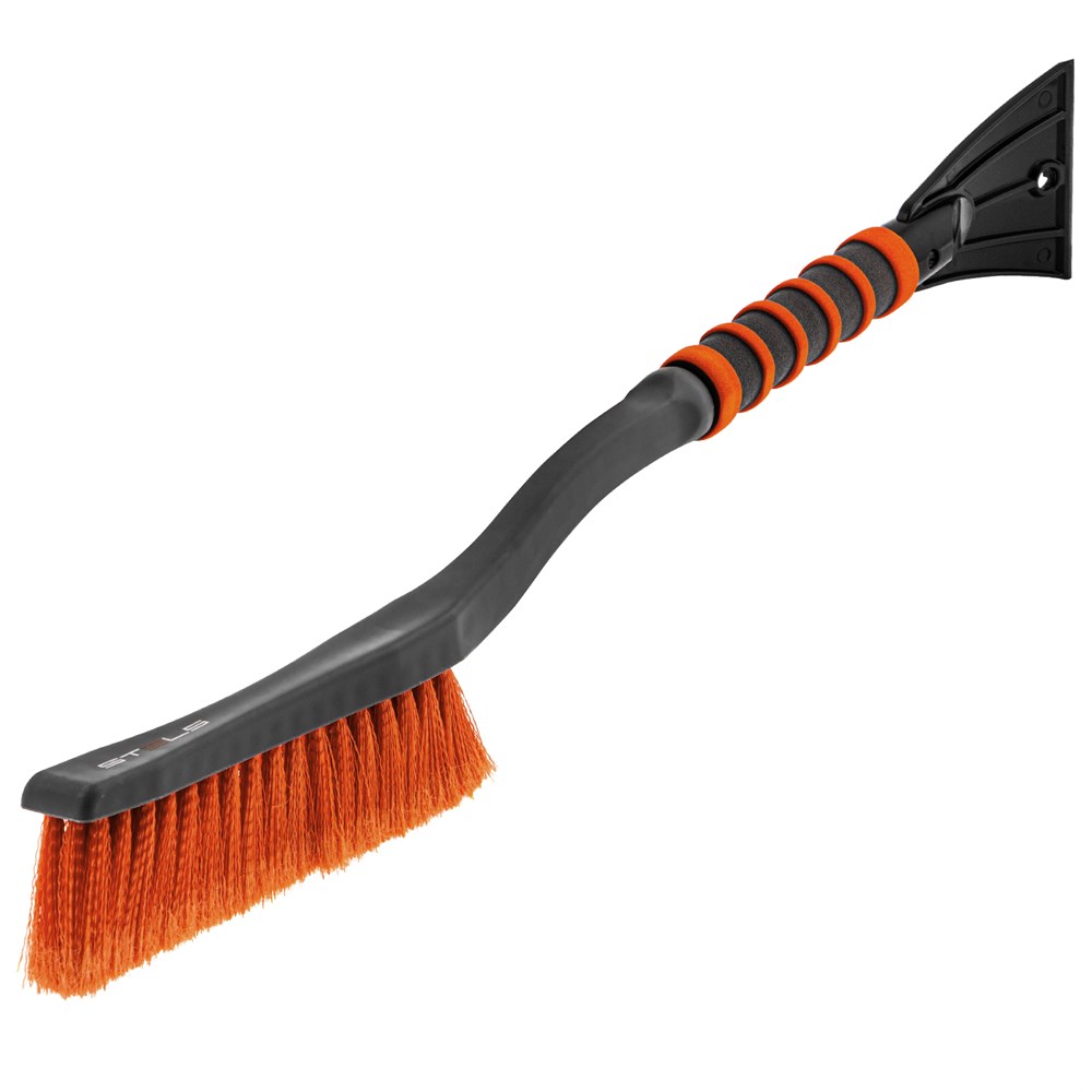 Щетка-сметка для снега со скребком Stels 55303 длиной 580 мм используется для чистки автомобиля в зимний период. Она не царапает лакокрасочное покрытие, поскольку ее щетина имеет распушенные кончики. Щетка со скребком пригодится автолюбителям.