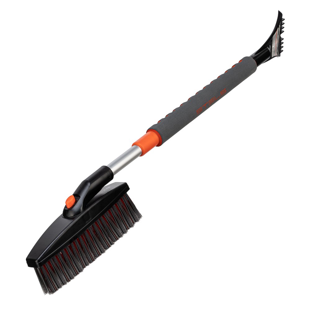 Телескопическая щетка-сметка для снега со скребком Stels 55313, длину которой можно увеличить с 730 до 1000 мм, помогает быстро очистить автомобиль от снега и наледи. Раздвижная рукоятка облегчает чистку капота и крыши. Щетка будет полезна автолюбителям.