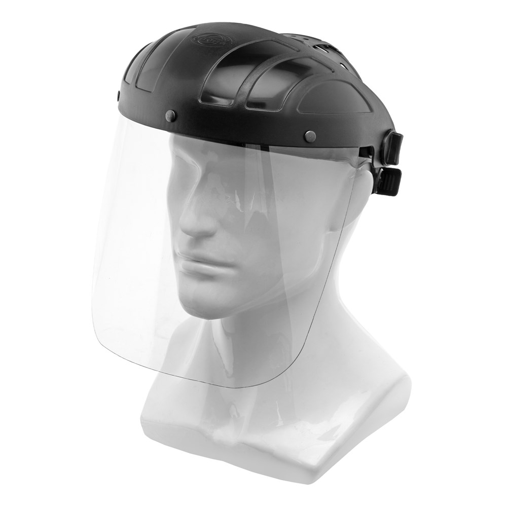 - Теменная и налобная ленты регулируются при помощи реечного механизма, обеспечивая комфортную посадку щитка даже при ношении с головным убором.