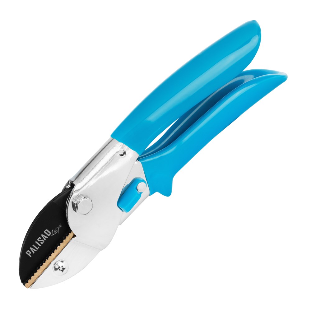 Усиленный секатор Palisad LUXE 605245 длиной 205 мм, с наковальней и рукоятками в ПВХ-оболочке, предназначен для обрезки сухих и увядших веток толщиной до 20 мм, в том числе для срезания засохшей виноградной лозы. Опорная пластина удерживает ветку, облегчая работу. Рычажный механизм увеличивает усилие сжатия на 10%.