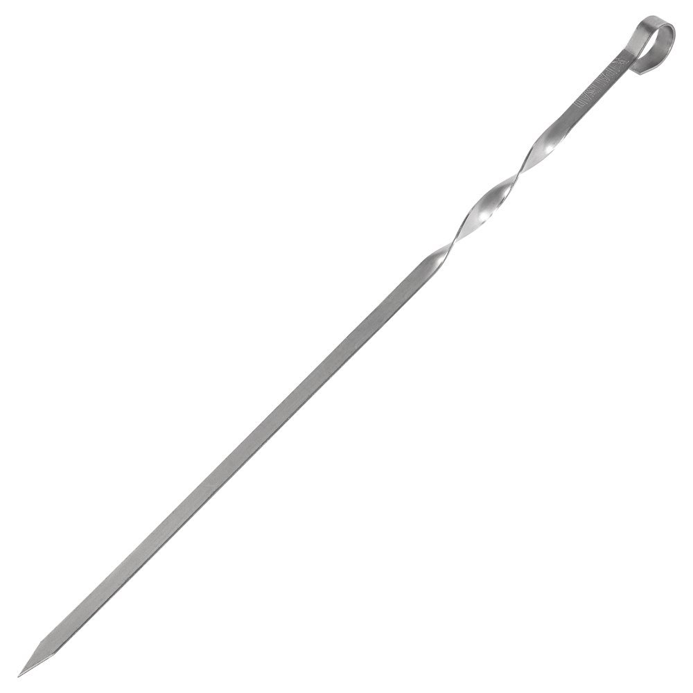 - Шампур изготовлен из упругой нержавеющей стали толщиной 1,5 мм, поэтому прослужит долго и не погнется под тяжестью мяса.