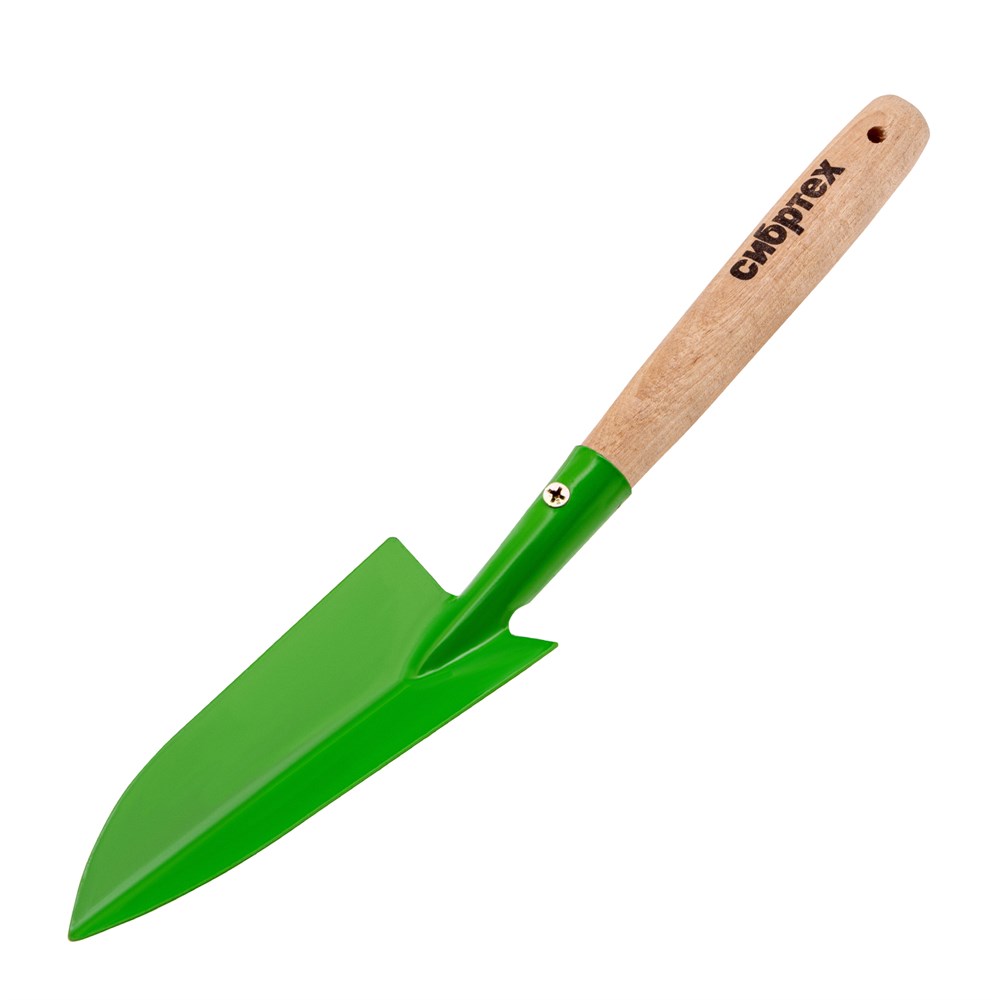 НаименованиеСовок посадочный узкий, 65 х 345 мм, стальной, деревянная рукоятка, Агроном, Сибртех