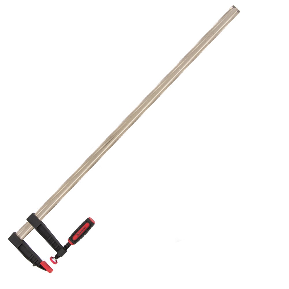F-образная струбцина Matrix 20410 размером 1000 х 120 х 1100 мм используется для зажима металлических, деревянных и других заготовок для их последующей обработки или сборки. Представляет собой штангу, на которой установлено 2 кронштейна — неподвижный и подвижный. Деталь помещается между ними и прижимается к губкам при помощи винтового зажима с трапециевидной резьбой. Подвижный кронштейн позволяет регулировать величину захвата, которая может достигать 1000 мм. Струбцину применяют для выполнения слесарных и столярных работ.