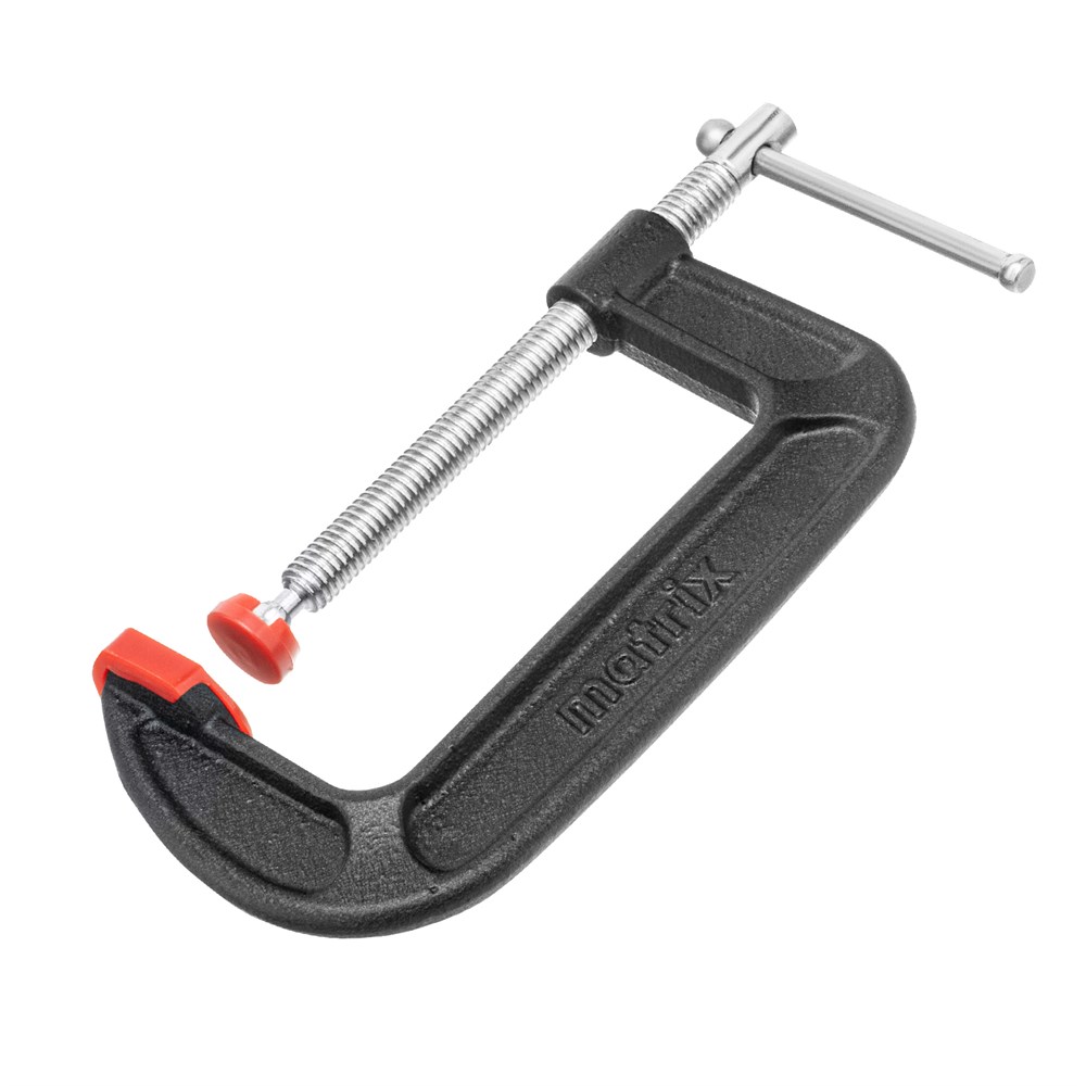 G-образная струбцина Matrix 20605 с максимальной шириной зажима 125 мм используется для фиксации заготовок или закрепления их на верстаке или станке. Позволяет склеивать детали, а также сверлить их, шлифовать, опиливать и проводить другие работы. Подходит для использования при сварке. Рама изготовлена из высокопрочного чугуна, поэтому выдерживает значительные усилия. Винт с трапециевидной резьбой обеспечивает надежную фиксацию предметов. Струбцина применяется в слесарном и столярном деле, а также в домашнем хозяйстве.