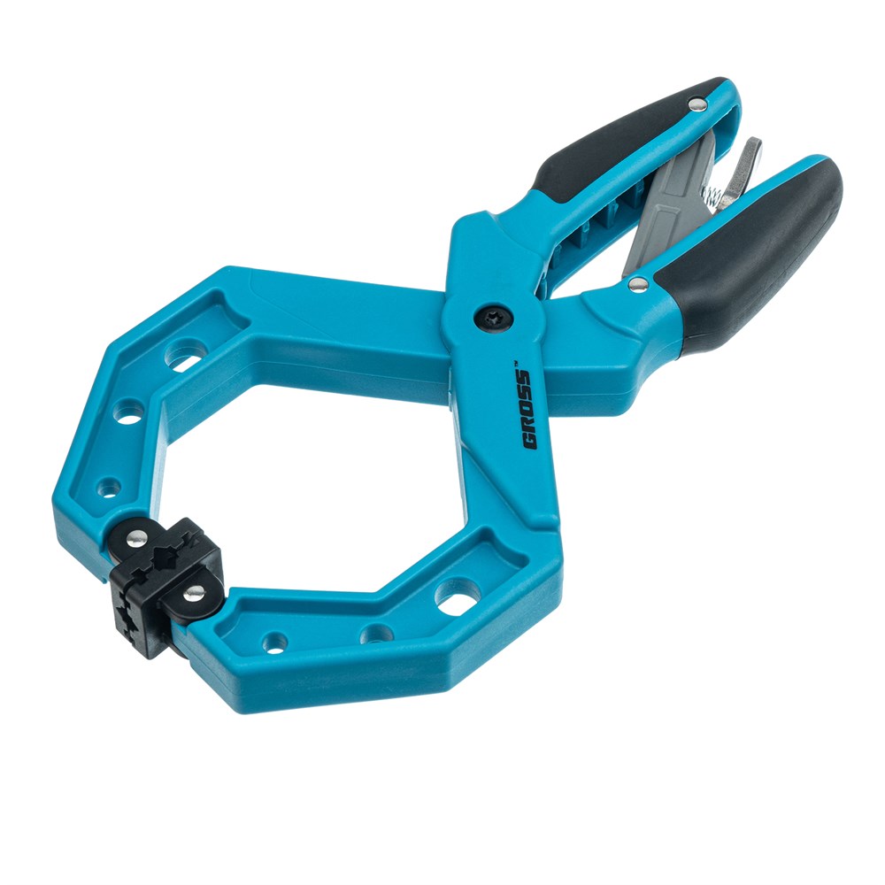 - Благодаря шарнирному креплению прижимных насадок сжимаемые детали можно устанавливать под разными углами.