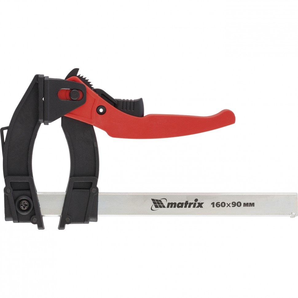 Струбцина реечная быстрозажимная, пластиковый корпус рычажно-храповой механизм, 160 х 90 х 240 мм, штанга 5 х 20 мм Matrix