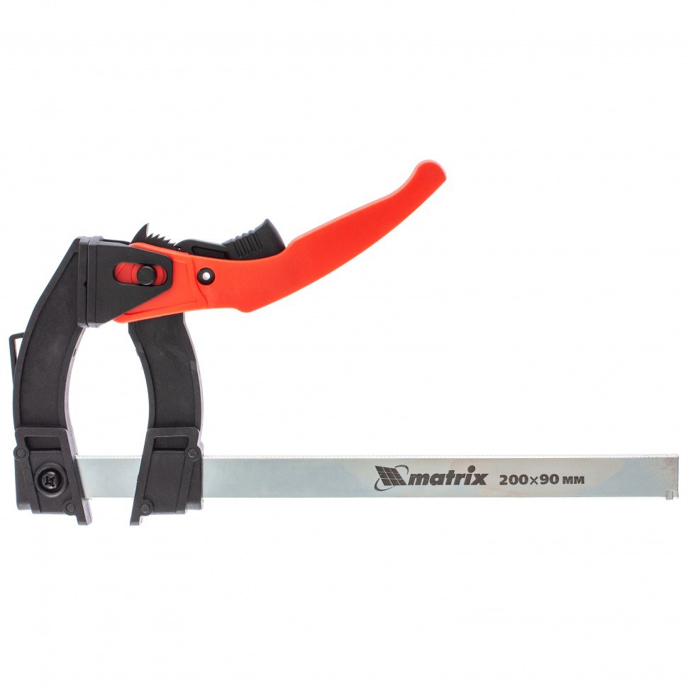Струбцина реечная быстрозажимная, пластиковый корпус рычажно-храповой механизм, 200 х 90 х 290 мм, штанга 5 х 20 мм Matrix