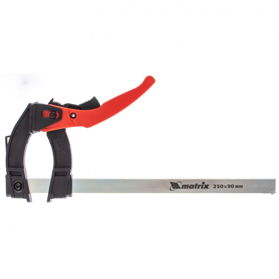 Струбцина реечная быстрозажимная, пластиковый корпус рычажно-храповой механизм, 250 х 90 х 340 мм, штанга 5 х 20 мм Matrix