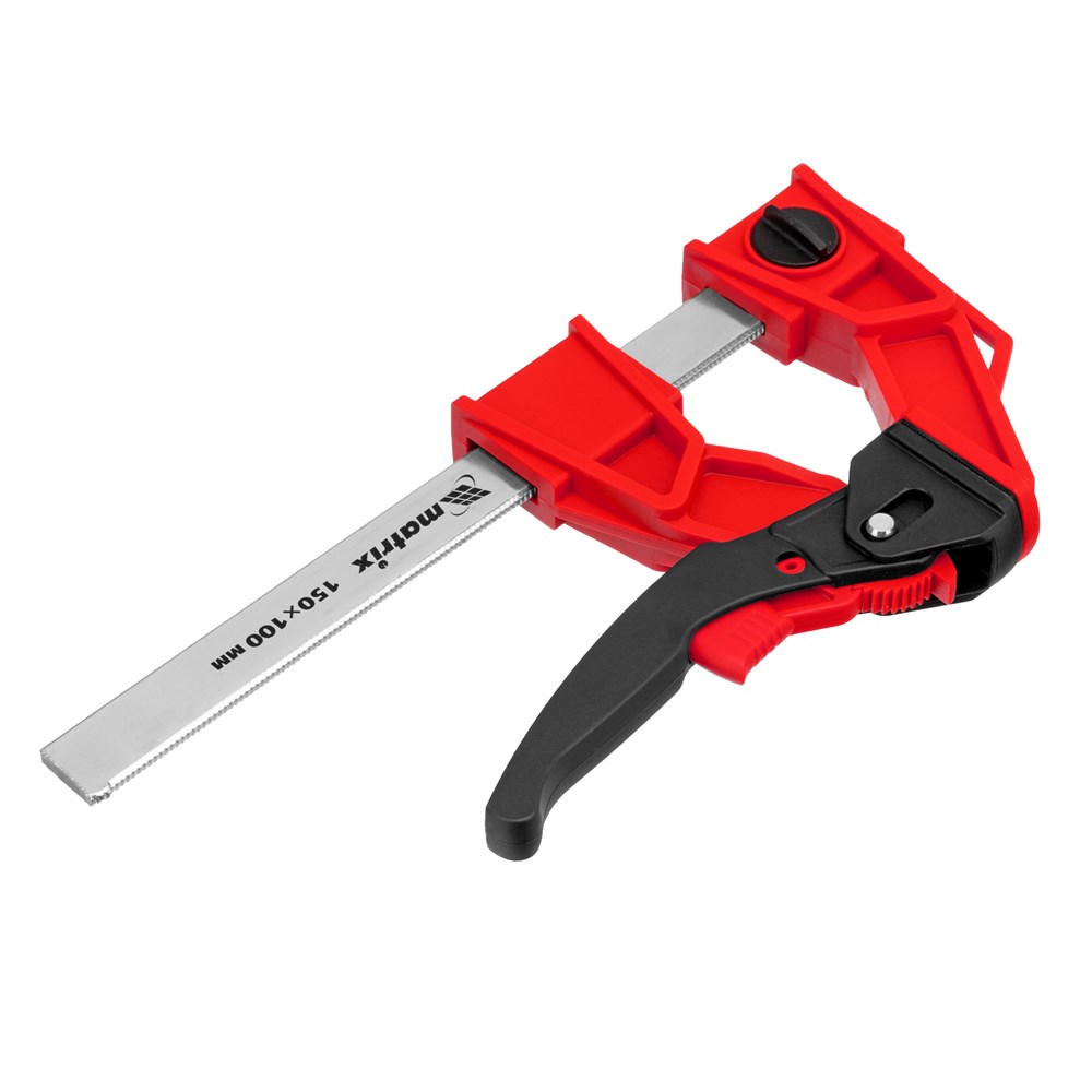 Струбцина реечная быстрозажимная, усиленная, пластиковый корпус рычажно-храповой механизм, 150 х 100 х 306 мм, штанга 5 х 22 мм Matrix