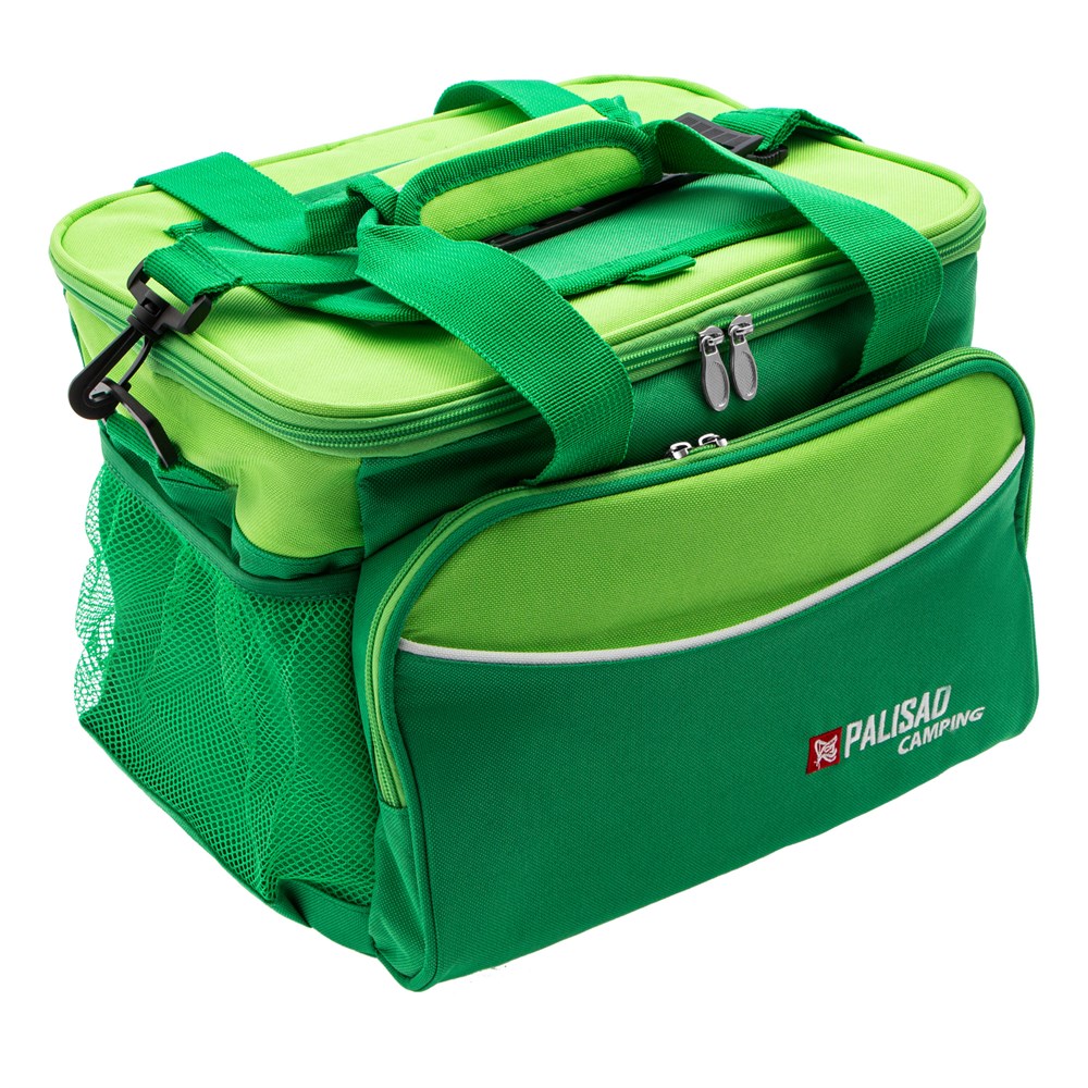 Сумка-холодильник Palisad Camping 69597 габаритами 32 х 25 х 24 см комплектуется двумя охлаждающими блоками и способна в течение нескольких часов сохранять продукты и напитки прохладными, поэтому будет полезна в поездке или на пикнике. Для максимального охлаждения следует перед использованием минимум 6 часов выдержать блоки в морозильной камере. Внутри сумки-холодильника имеются сетчатые кармашки для аккумуляторов холода. Сумку без охлаждающих блоков можно использовать для поддержания температуры горячих блюд и напитков. Регулируемый ремень позволяет носить сумку на плече.