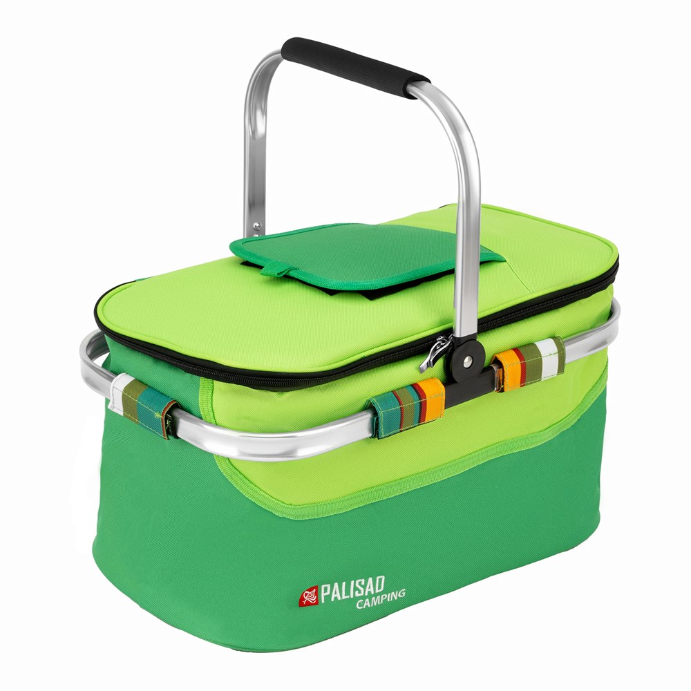 Термосумка Palisad Camping 69595 размером 44 х 24 х 26 см, используется во время поездок и на пикниках. Благодаря теплоизоляционному слою из PEVA и EPE долгое время сохраняет температуру охлажденных или подогретых продуктов и напитков. Имеет надежную конструкцию, усиленную каркасом и рукояткой из алюминия.