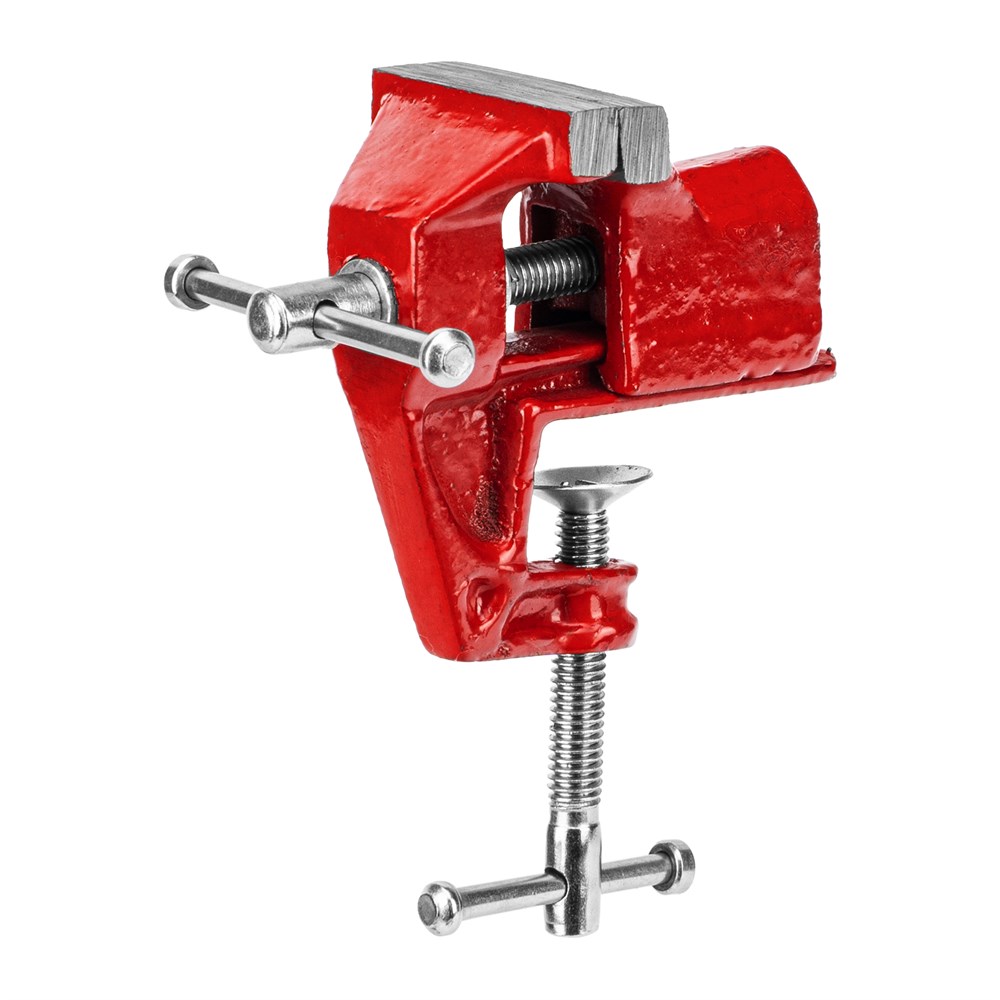 - Простое использование — винтовой зажимной механизм позволяет легко устанавливать и снимать тиски с рабочего стола.