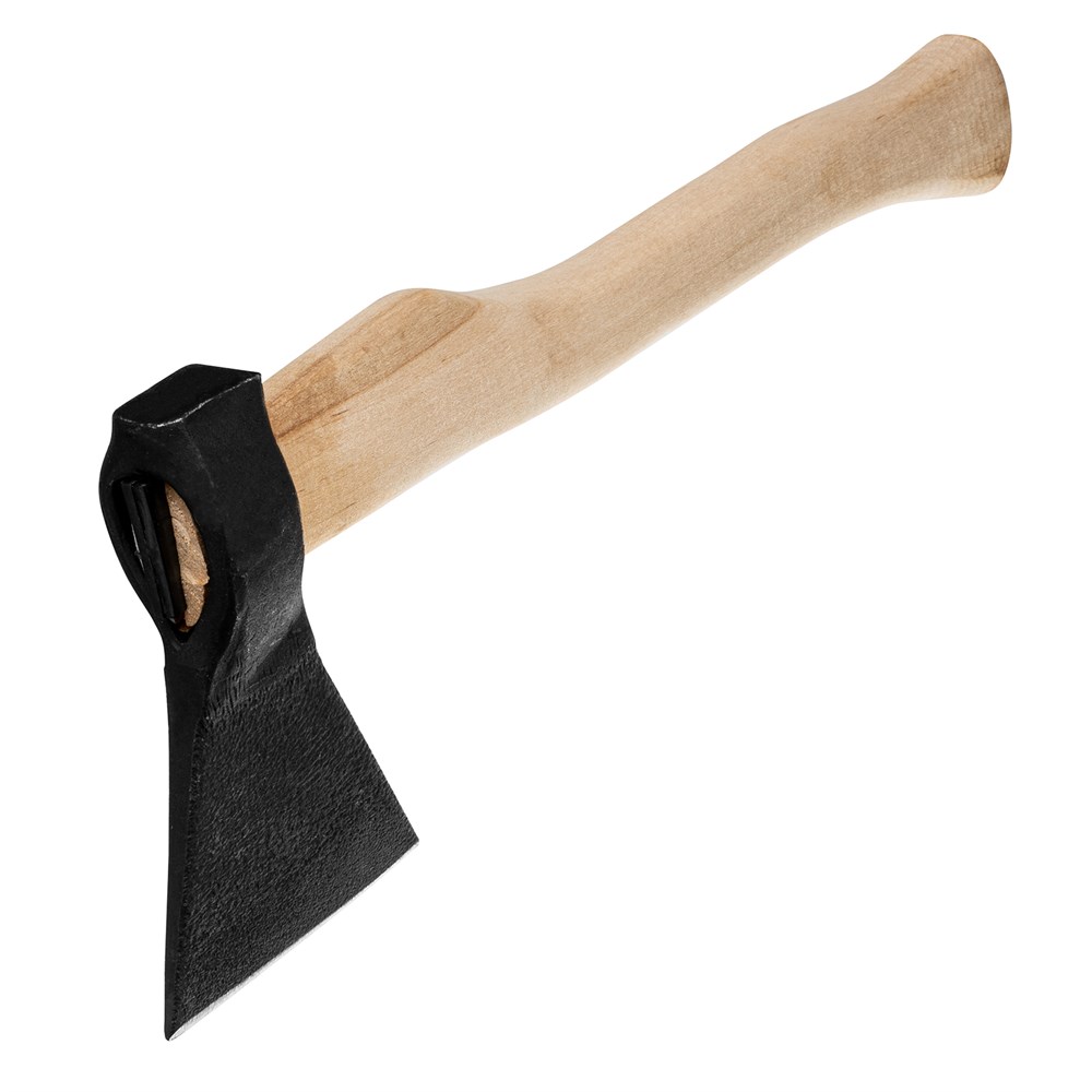 - Прочное соединение головы с топорищем — в месте всада установлен клин.