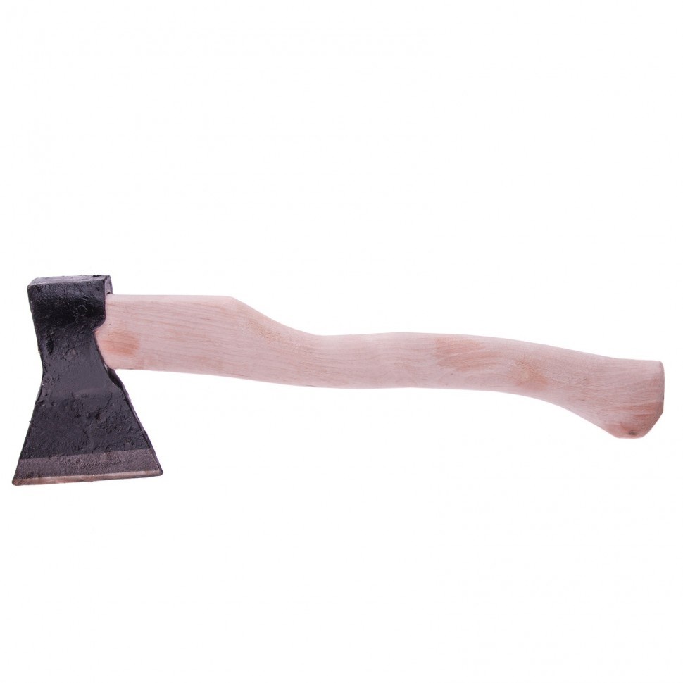 Кованый топор Б 21670 с рабочей частью весом 680 г и деревянным топорищем длиной 400 мм, весит в сборе 900 г и рассчитан на бытовое использование. Инструмент с небольшим прямым лезвием позволяет рубить и тесать древесину любых пород.