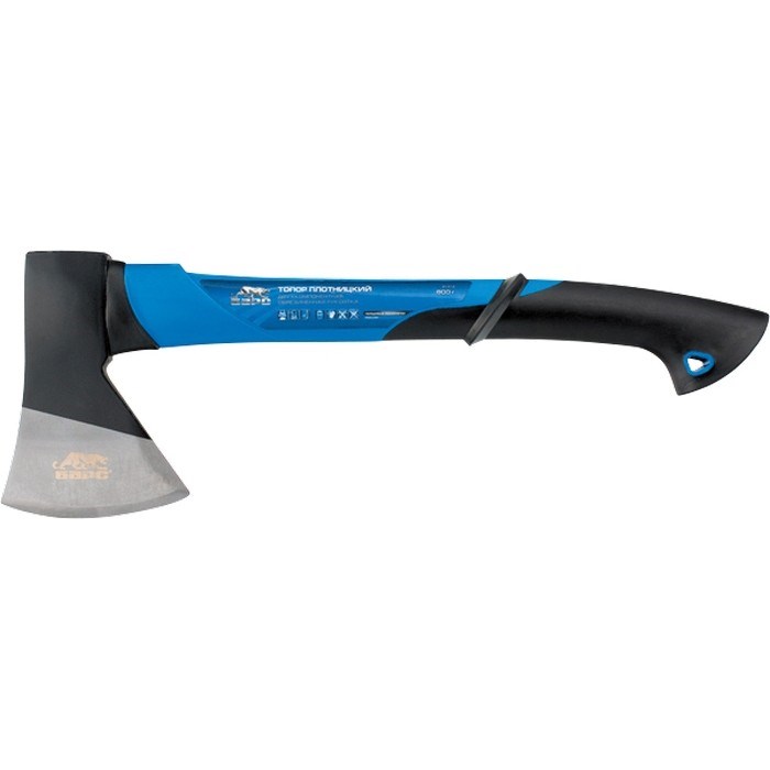 НаименованиеТопор плотницкий, 800 г, двухкомпонентная обрезиненная рукоятка Барс