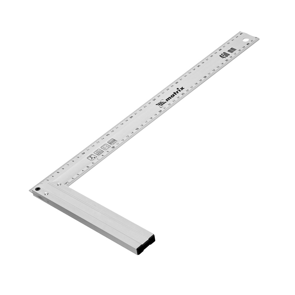 Алюминиевый литой угольник Matrix 32475 длиной 450 мм используется для проверки и разметки прямых углов во время столярных и отделочных работ. Простой, но незаменимый инструмент повышает точность работы и позволяет получить качественный результат.