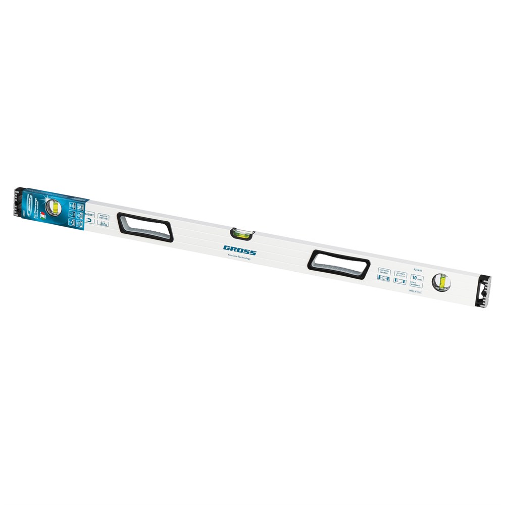 Усиленный алюминиевый уровень Gross 34372 длиной 1000 мм, с рукоятками и 3 глазками, фрезерованный, магнитный, — это простой и универсальный инструмент для проверки горизонтали и вертикали. Благодаря качественному исполнению инструмент обеспечивает высокую точность работы.