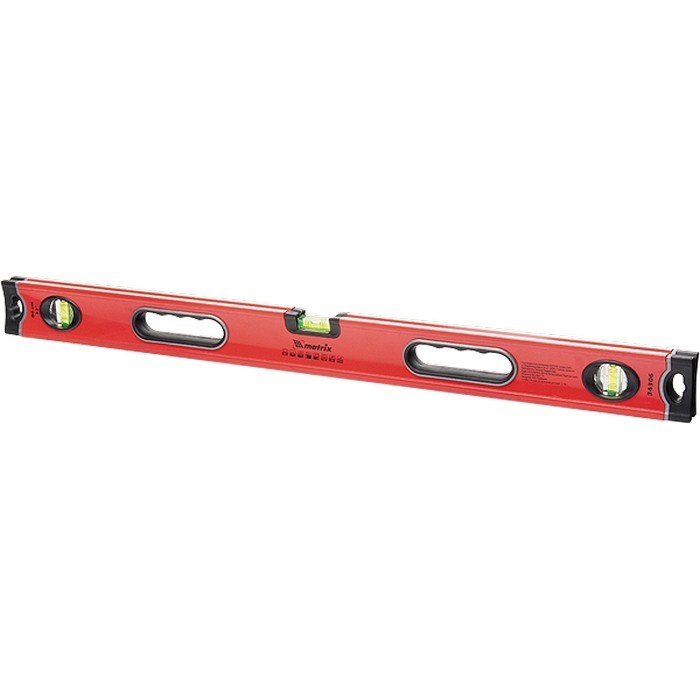 Алюминиевый уровень Matrix 34310 длиной 1200 мм, с 3 глазками, ударопрочными заглушками и двухкомпонентными ручками, повышает точность работы, т. к. позволяет обнаружить отклонения от вертикали, горизонтали и угла 45°. Используется для монтажа конструкций, укладки покрытий, облицовки поверхностей и т. д., подходит для профессионального и бытового применения.