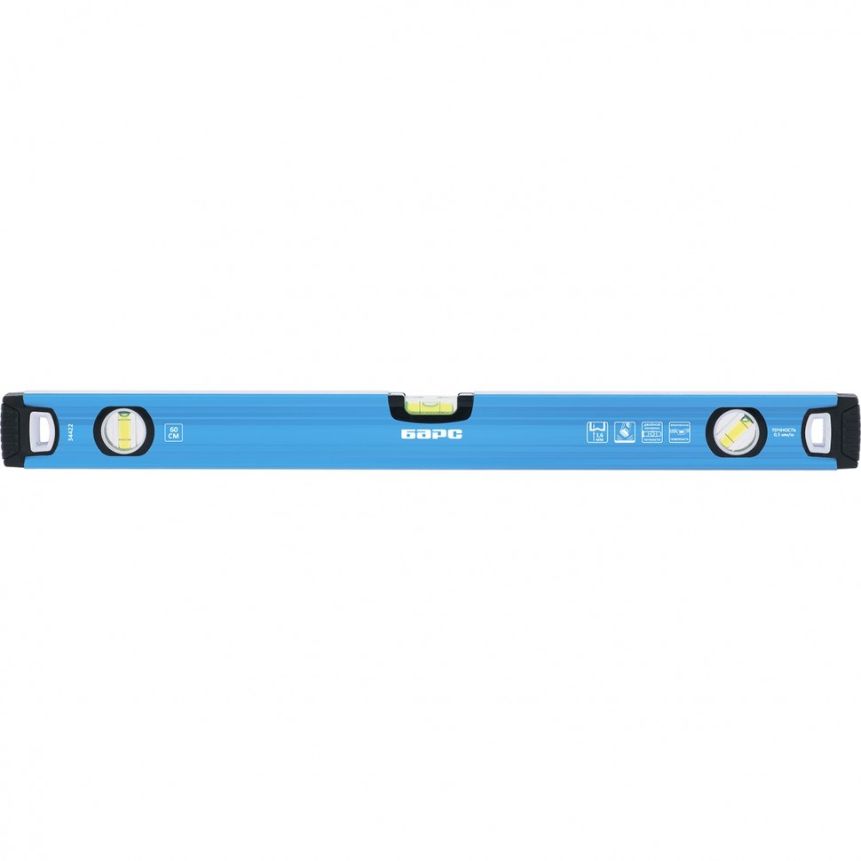 Алюминиевый фрезерованный уровень Барс 34430 из профиля толщиной 1,6 мм, длиной 1500 мм, с ударопрочными заглушками, оснащен 3 глазками, которые позволяют проверить точность вертикали и горизонтали, а также соответствие наклонных поверхностей углу 45°. Инструмент повышает точность строительных и ремонтных работ.